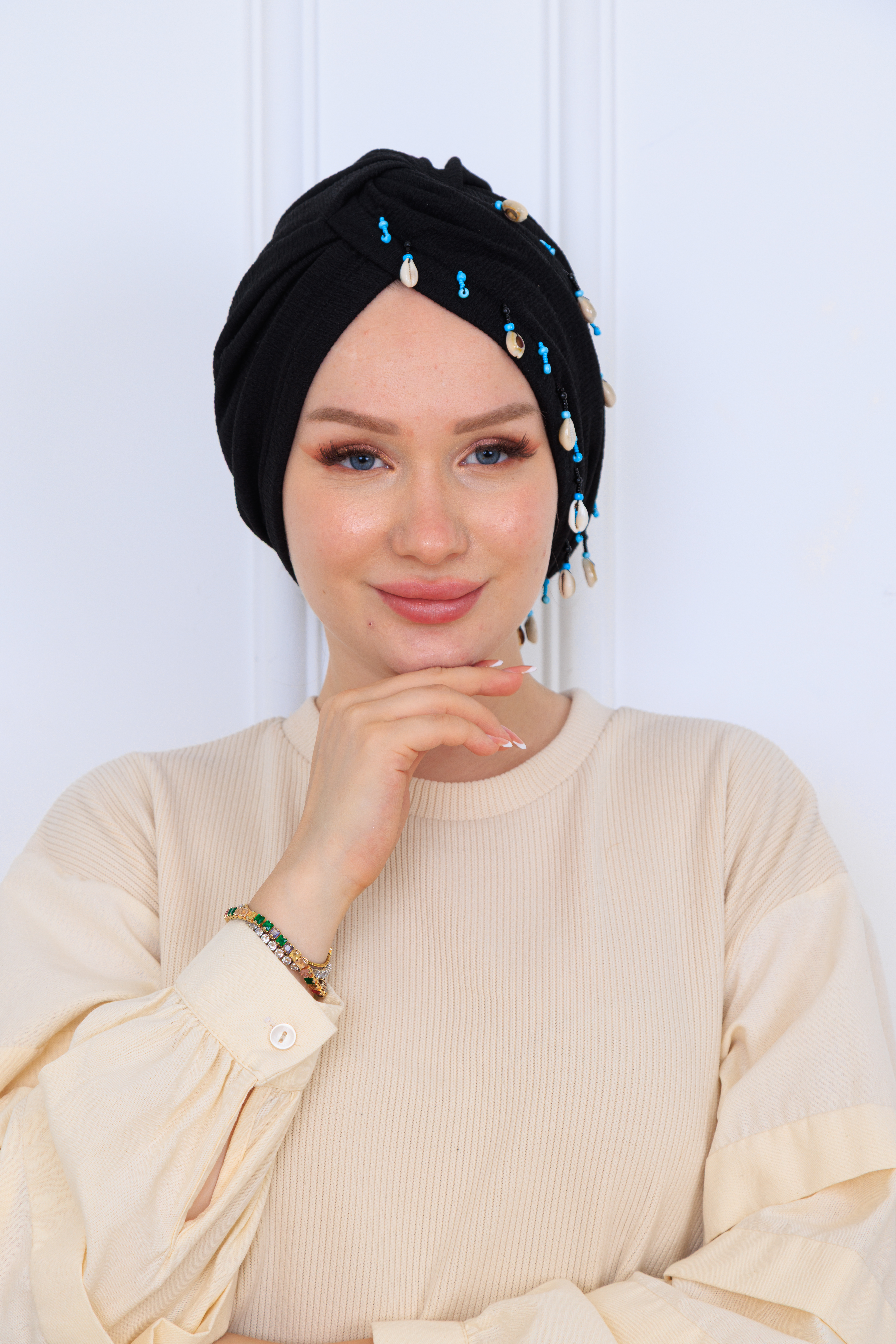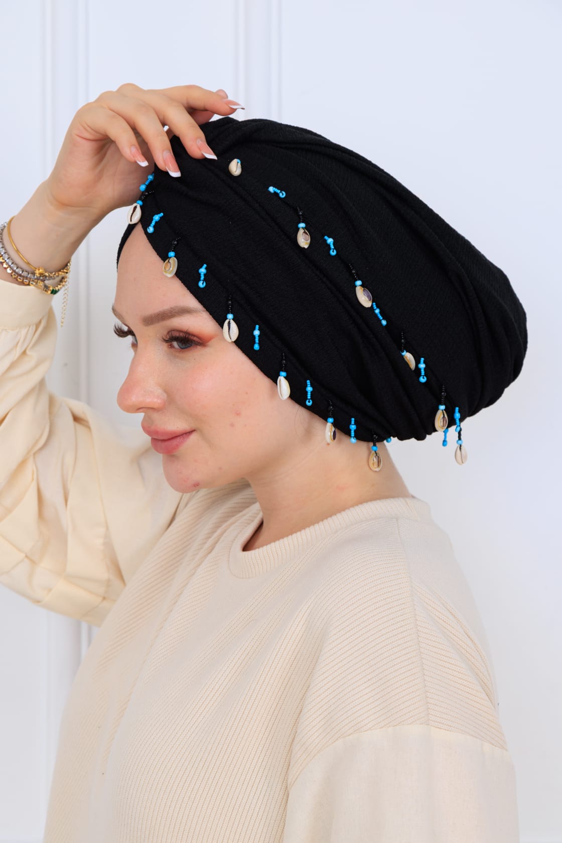 Dolamalı deniz kabuklu bone, deniz kıyısının zarif ve sade görüntüsünü yansıtan, dikkat çekici tasarımıyla dikkat çeken bir aksesuar seçeneğidir. Hem şıklığı hem de fonksiyonelliği bir arada sunarak, deniz kenarında geçireceğiniz keyifli zamanlarda ve yaz tatillerinizde vazgeçilmeziniz olacak.
