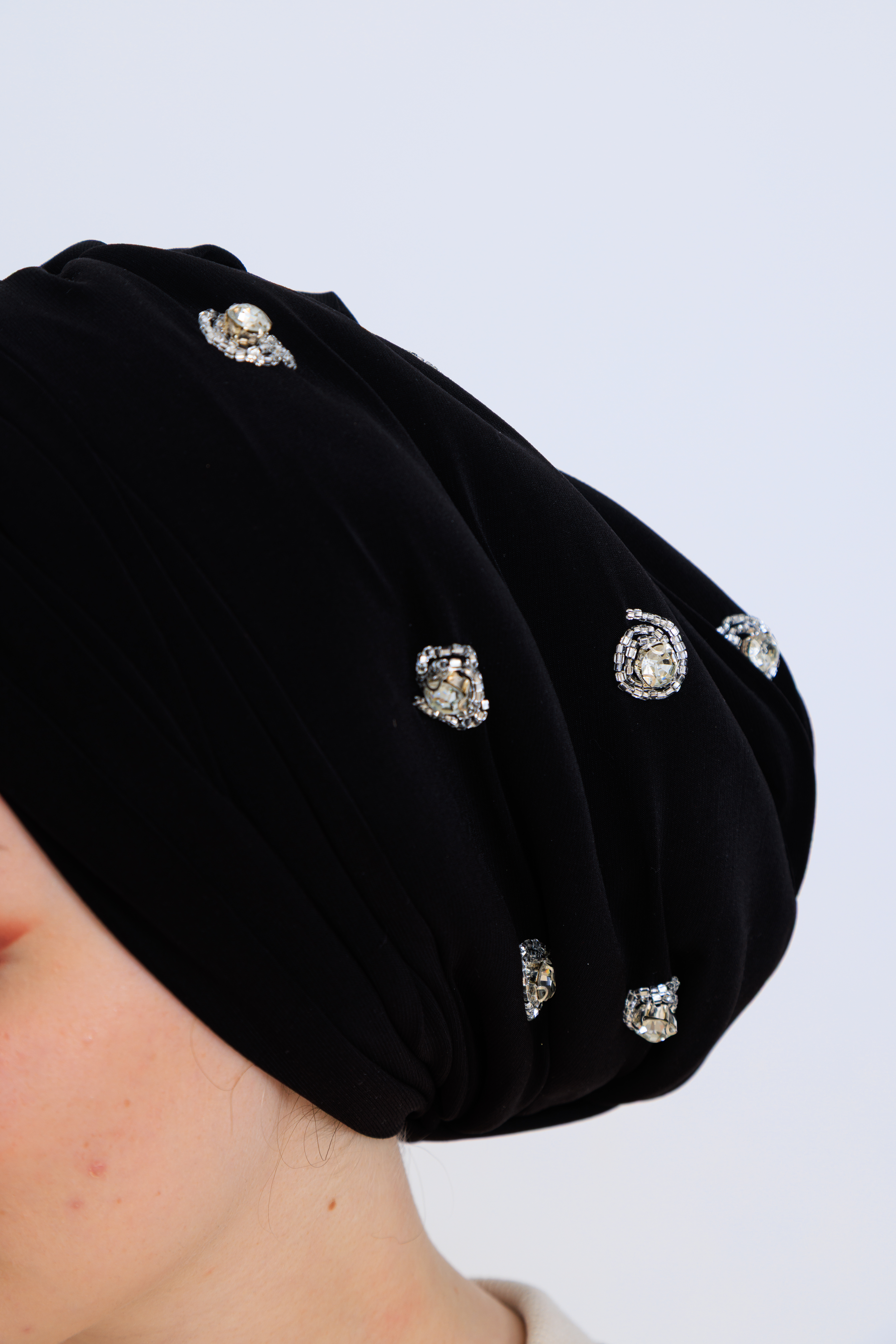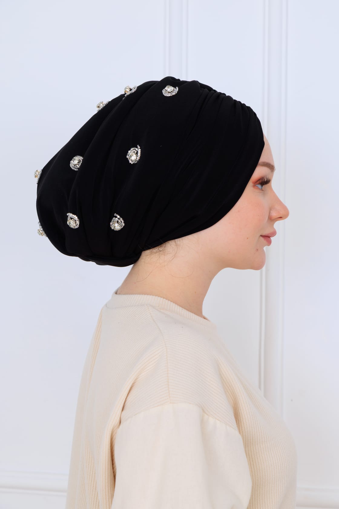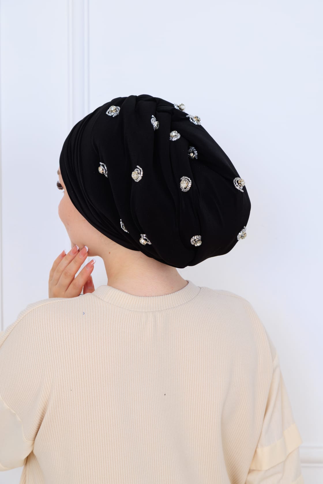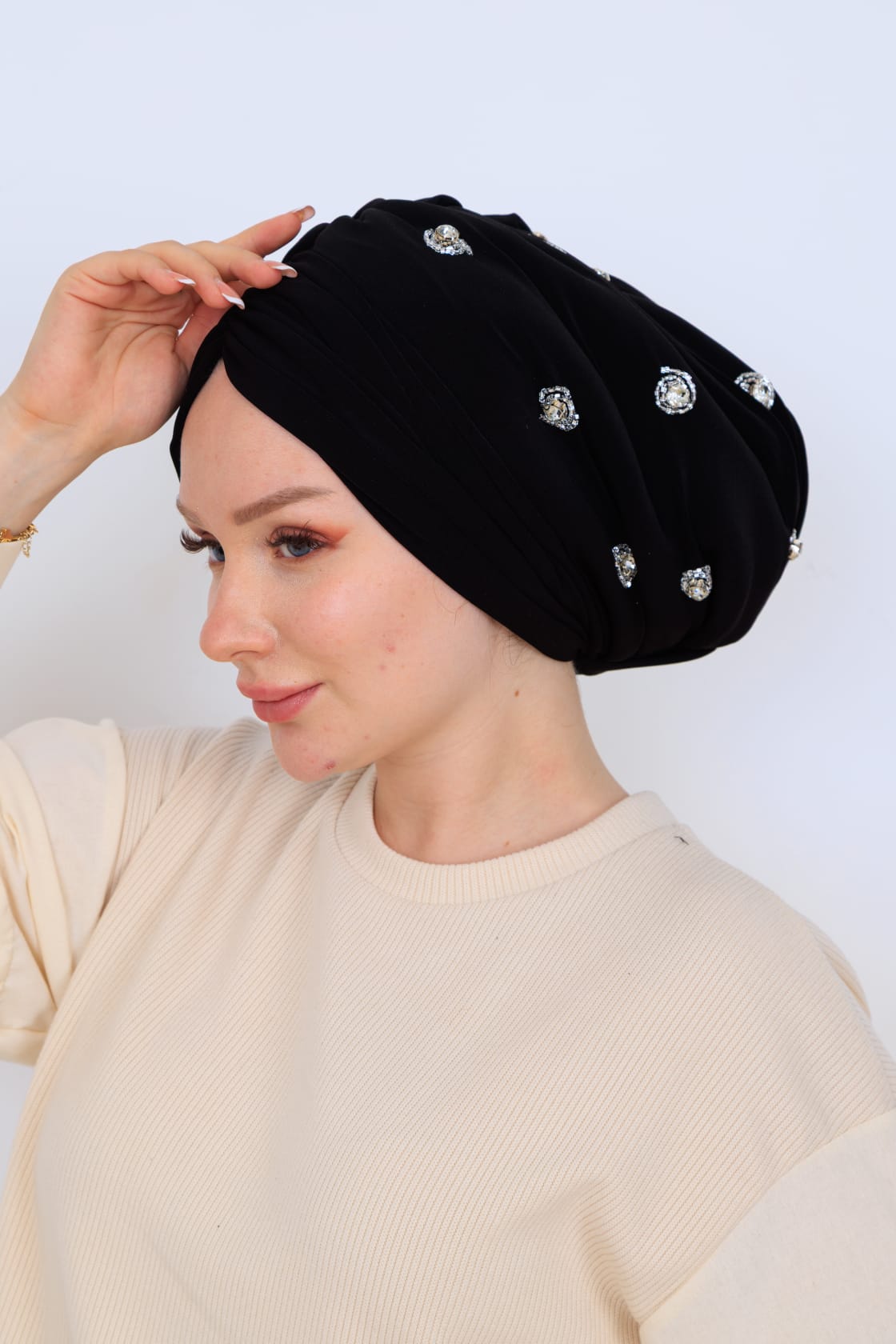 Drapeli dolgulu el işlemeli bone, zarafeti ve konforu bir araya getiren özel bir baş giyisisi olarak tasarlanmıştır. Bu eşsiz bone, hem şıklığı hem de fonksiyonelliği ile dikkat çekiyor. Kadınların günlük yaşamlarında ya da özel günlerinde rahatlıkla kullanabilecekleri mükemmel bir aksesuar.