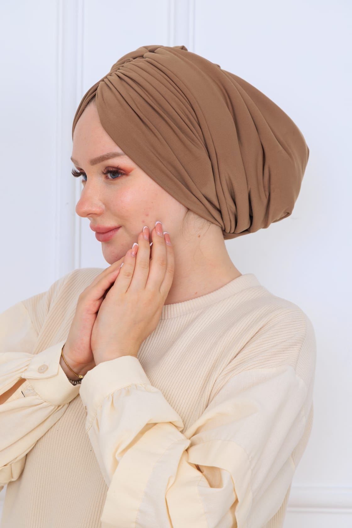 Drapeli dolgulu mocha bone, şıklığı ve zarafeti ile dikkat çeken modern bir baş örtüsüdür. Göz alıcı mocha rengi, her türlü kıyafetle uyum sağlarken, ürünün kendine has tasarımı sayesinde farklı stiller oluşturmanıza olanak tanır. Bu bone, sadece bir aksesuar olmanın ötesine geçerek, kişisel tarzınızı ifade etme imkanı sunar.