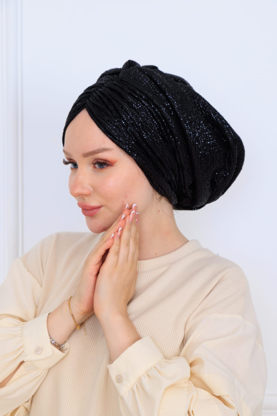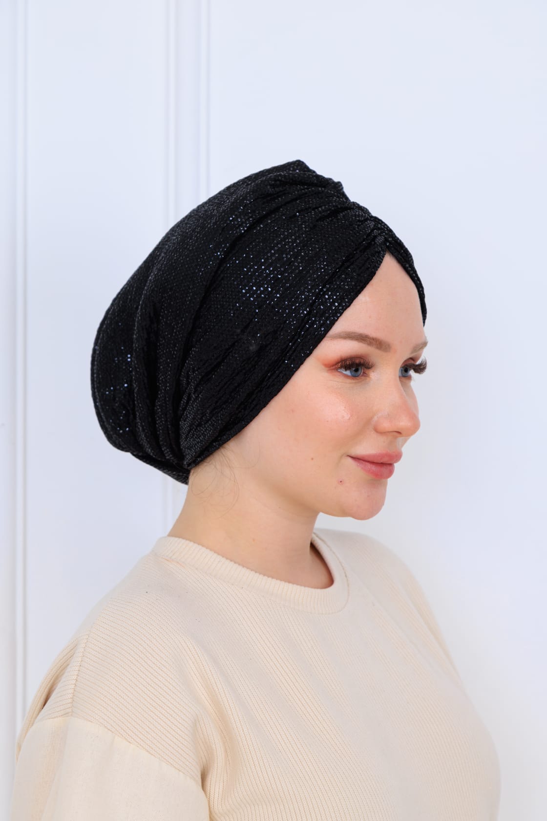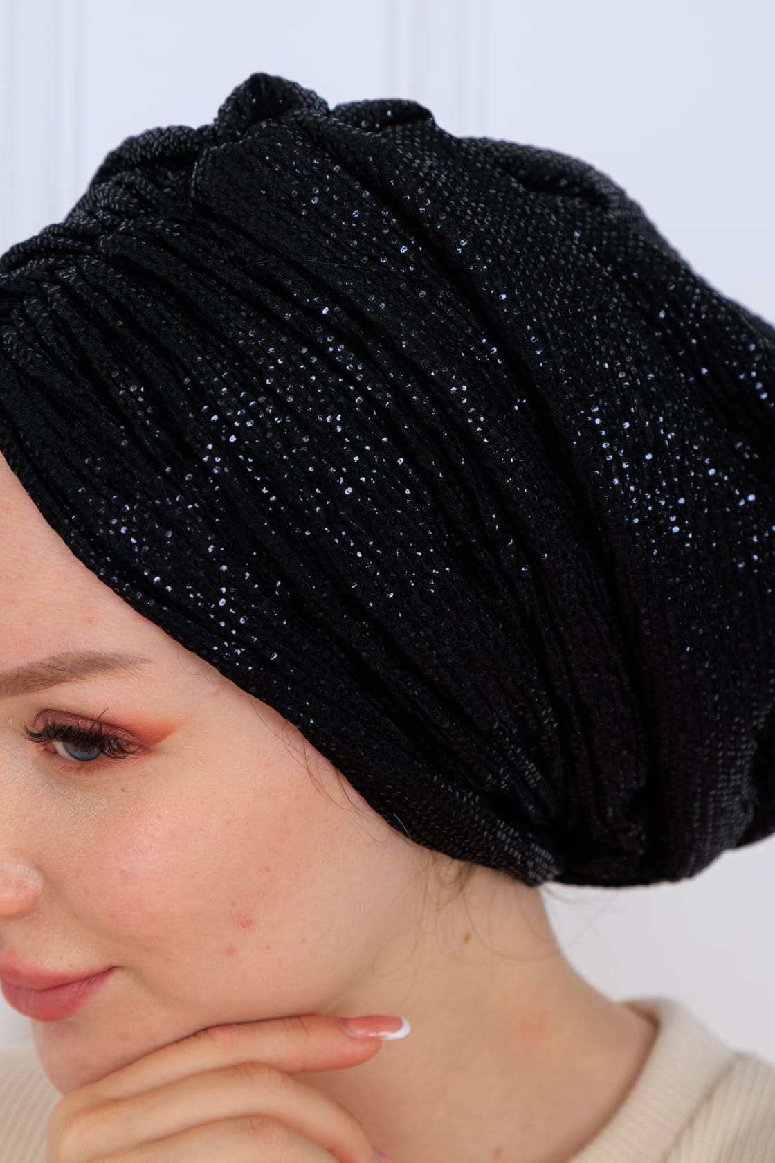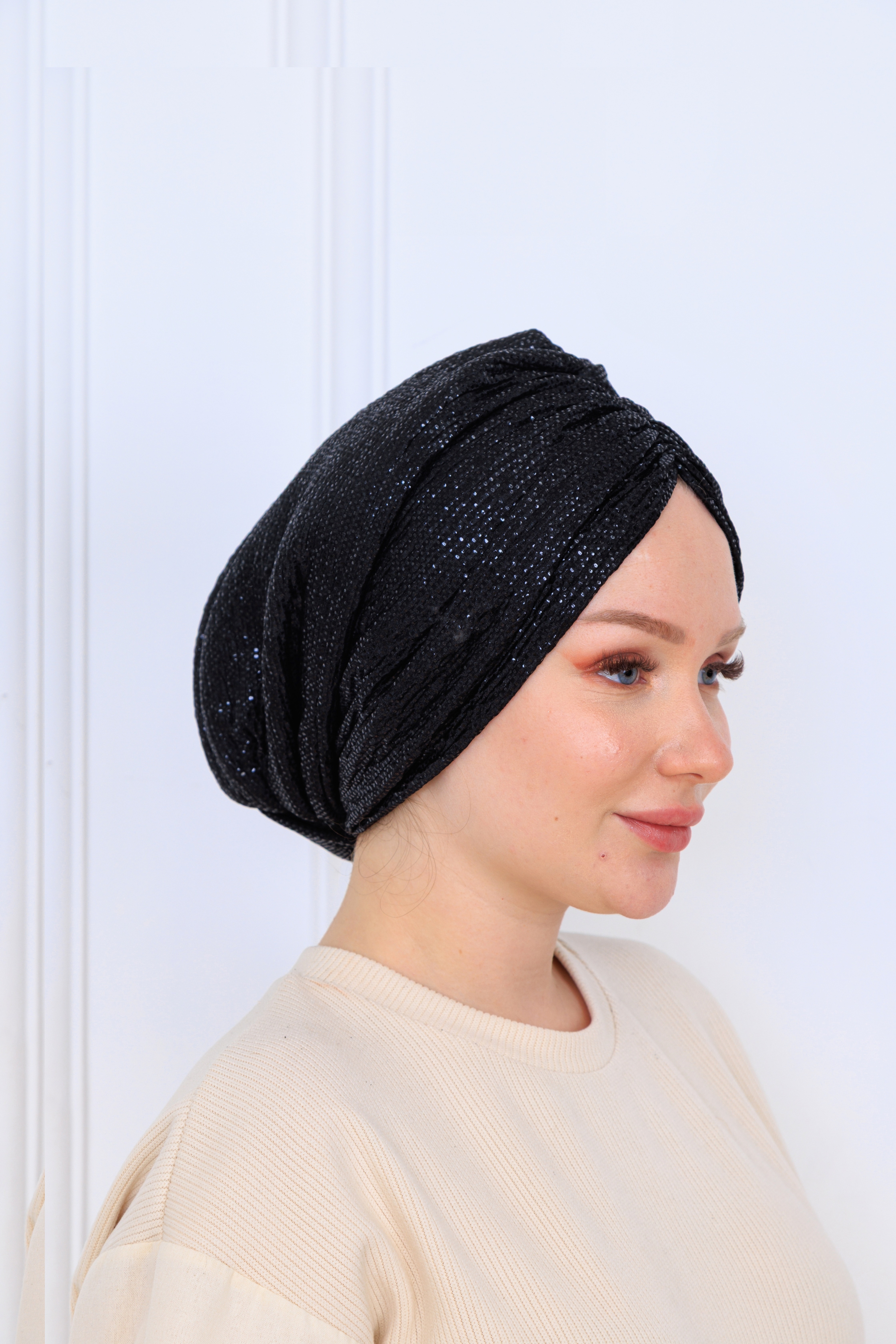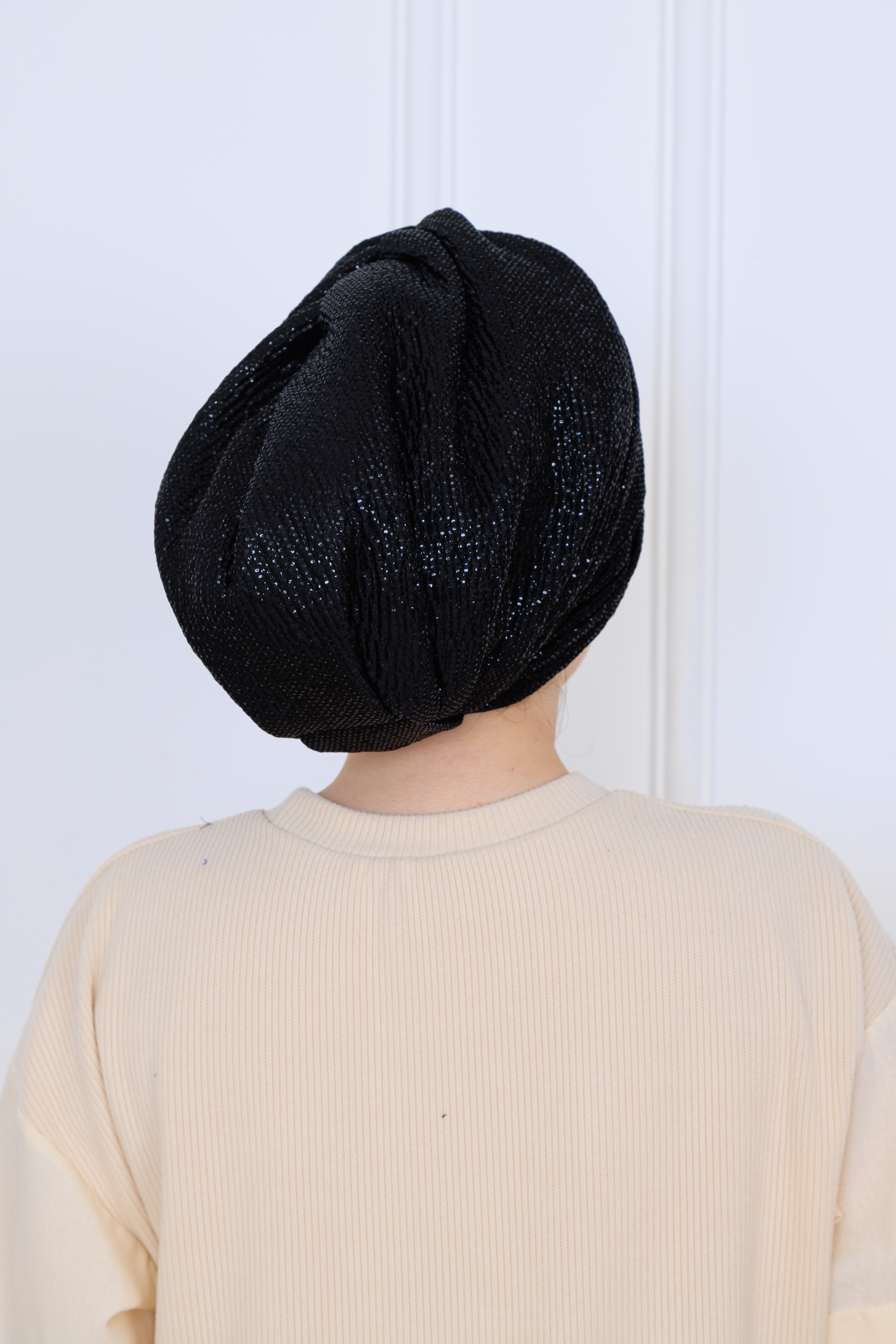Drapeli dolgulu parlak bone, modern şıklığı ve zarafeti bir araya getiren eşsiz bir aksesuardır. Özellikle özel günlerde, davetlerde ve günlük hayatta stilinizi tamamlamak için mükemmel bir tercihtir. Üstün kaliteli malzemelerden üretilen bu bone, hem konforu hem de estetiği ön planda tutmaktadır.