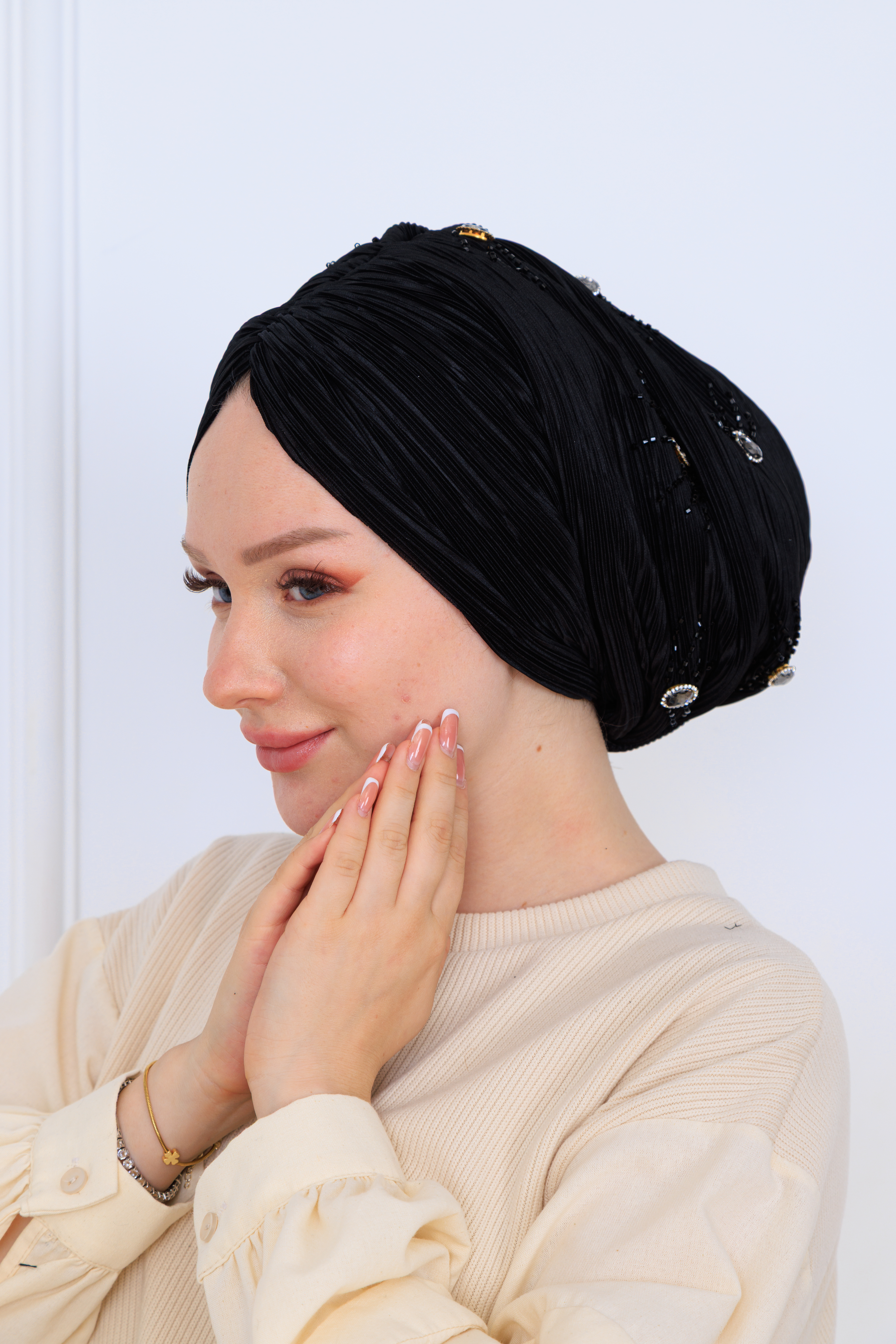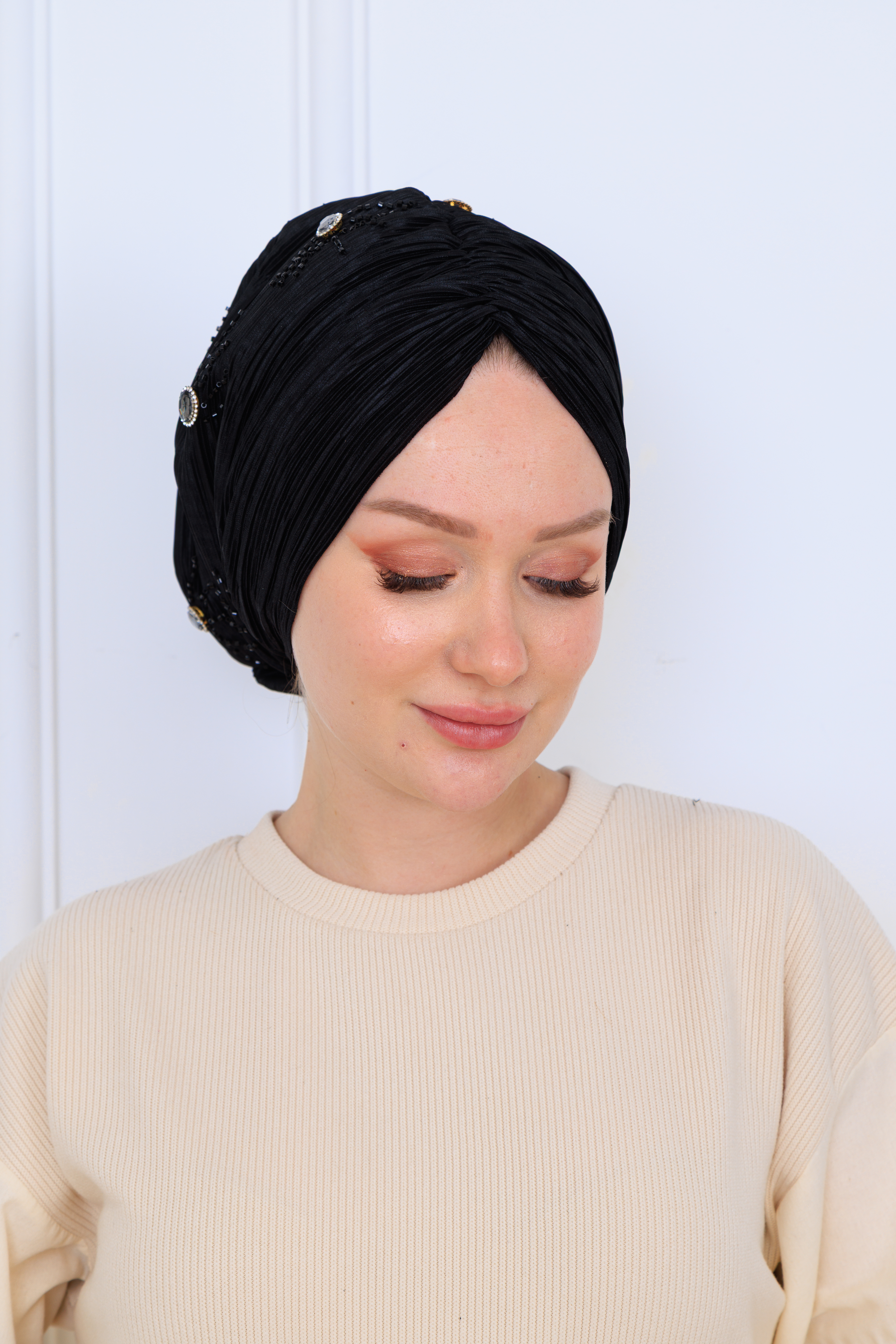 Drapeli dolgulu piliseli el işçiliği bonemiz, şıklığı ve zarafeti bir arada sunan özel bir tasarımdır. Her biri el emeğiyle özenle hazırlanmış bu bone, hem estetik hem de işlevsellik açısından mükemmel bir seçimdir.