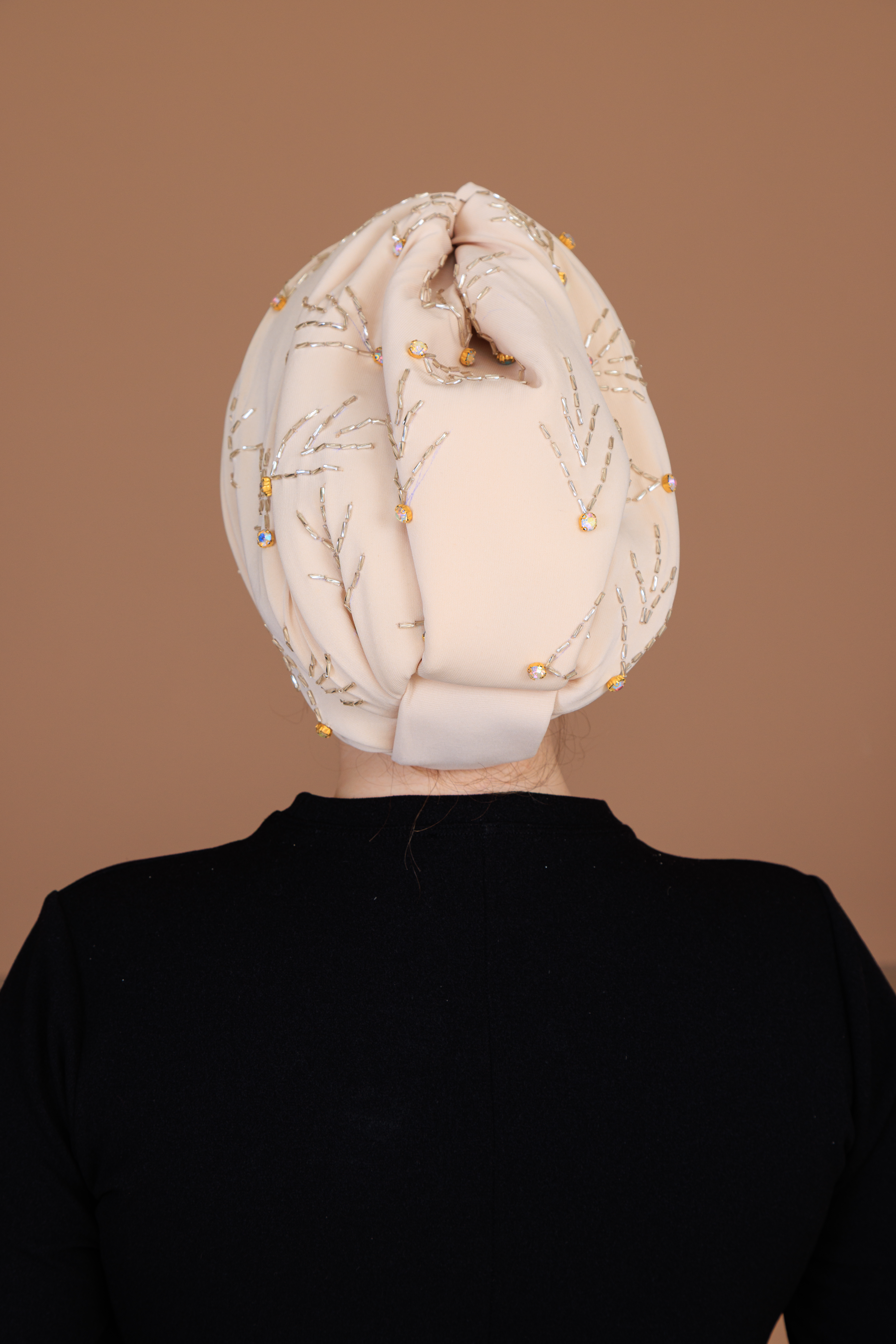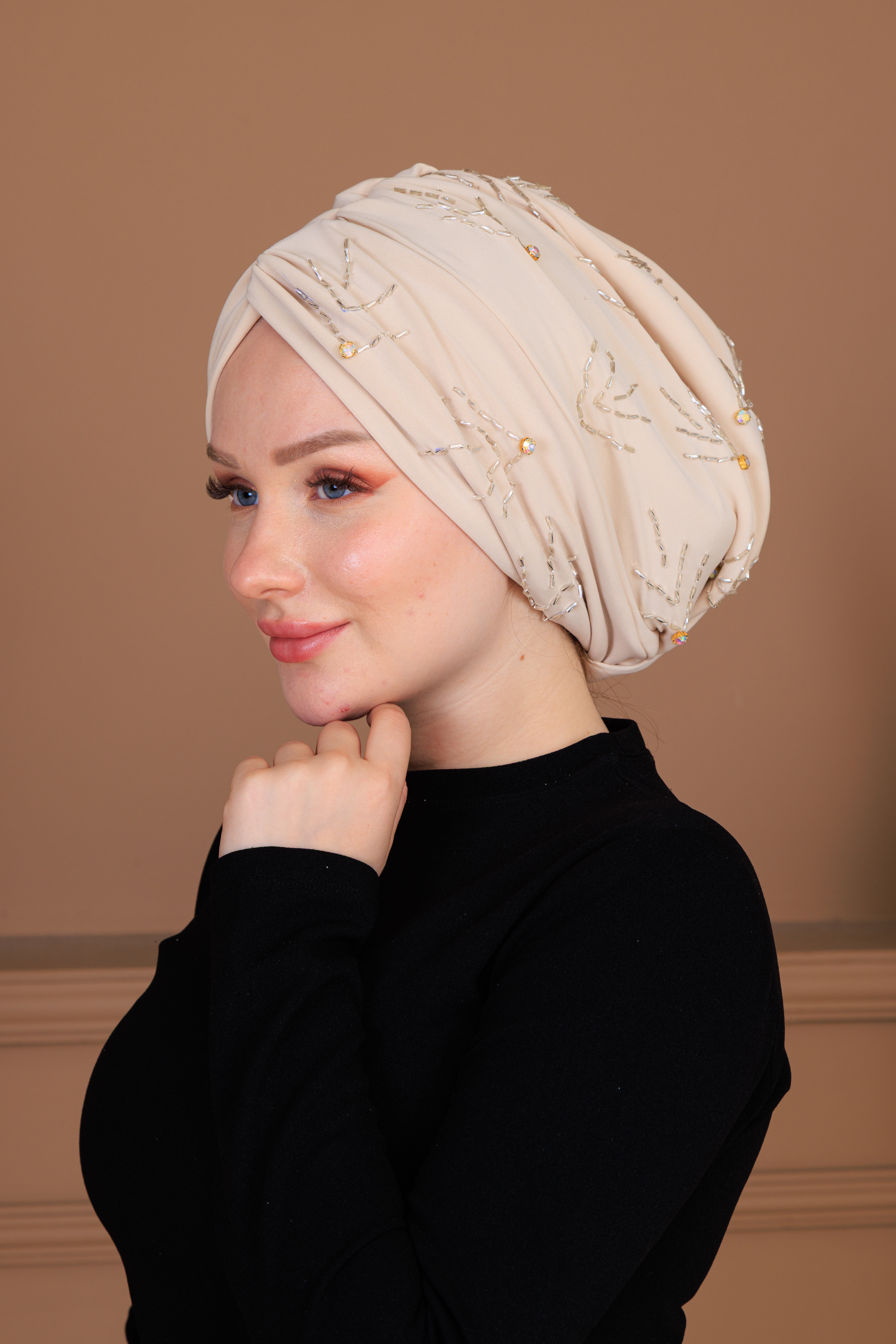 el işçiliği olan kesme boncuk ve yanardöner taş kullanılmıştır